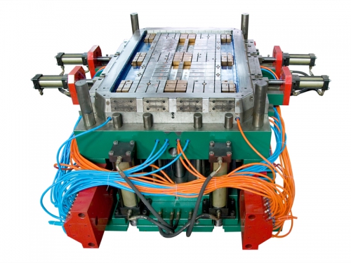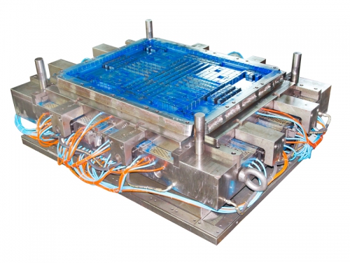 模具是指:為了將材料樹脂做成某種形狀,而用來承接射出注入樹脂的金屬制型。已溶解的材料是從澆口進入模具內再經由流道與流道口填充到模槽內。接下來則經 由冷卻工程與開模成型機脫模桿上的模具脫模板,推頂出成形品。